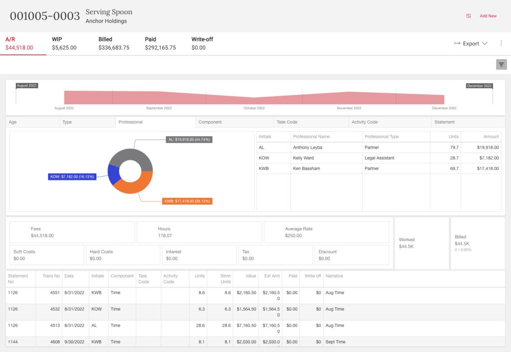 - The client is on the phone, and wants to talk through their $42,000 in A/R. The billing attorney needs the big picture on who worked on the matter, and drill down into the specifics as needed.