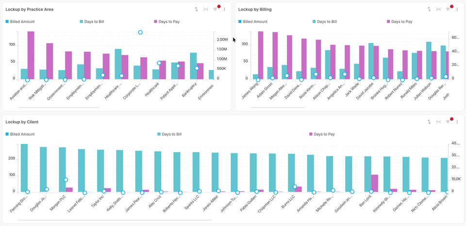Payment behavior is not uniformly distributed. Some clients are reliably slow; others are dispute-prone in ways that correlate with specific billing patterns. Identifying these clients early—ideally before they age into problem A/R— allows firms to adjust billing practices, set expectations proactively, or make informed decisions about engagement terms.